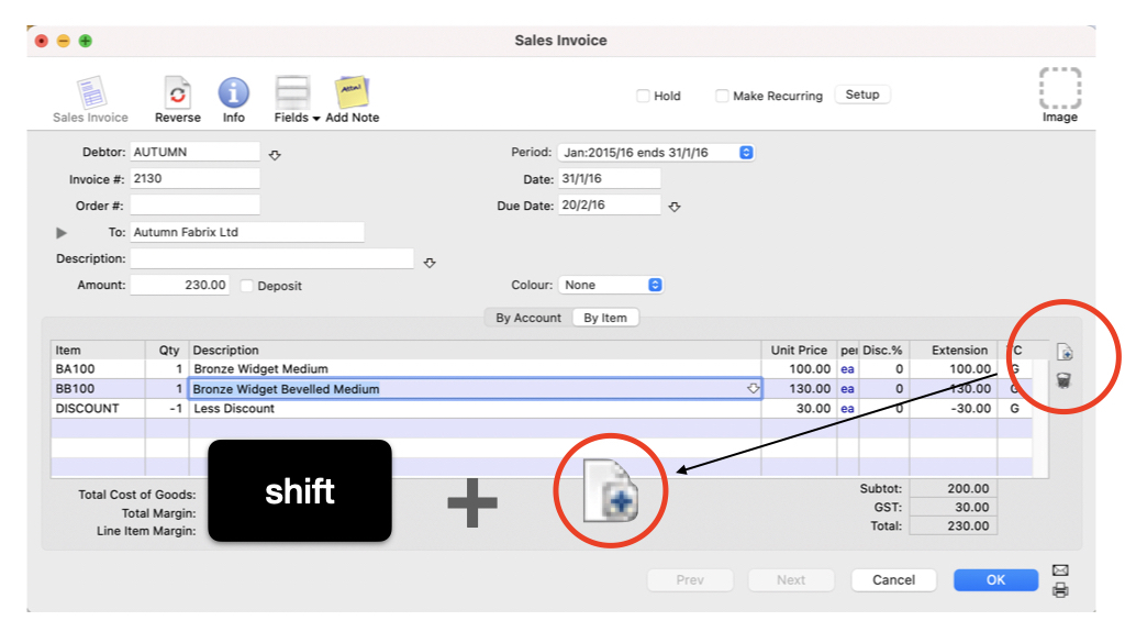 Version 9 has improved it by allowing the user to insert line item anywhere in the transaction/order by press down the Shift key and clicking on the Add Line button. That’s it. You no longer require trial and error between the combination of Shift, Control, Option, and Command key 🙂